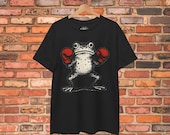 Boxing Frog T-shirt Fighting Toad Black Tee Fun...