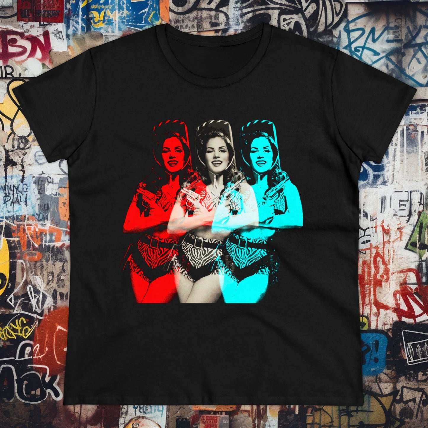 This "Country Girl Pop-art Cowgirl" tee is a vibrant fusion of western flair and pop-art style. Perfect for country girls with a bold, colorful edge! Saddle up and show off your unique style with this playful design!