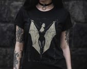 Goth T-Shirt Vintage Bat Lady Shirt Dark Aesthe...