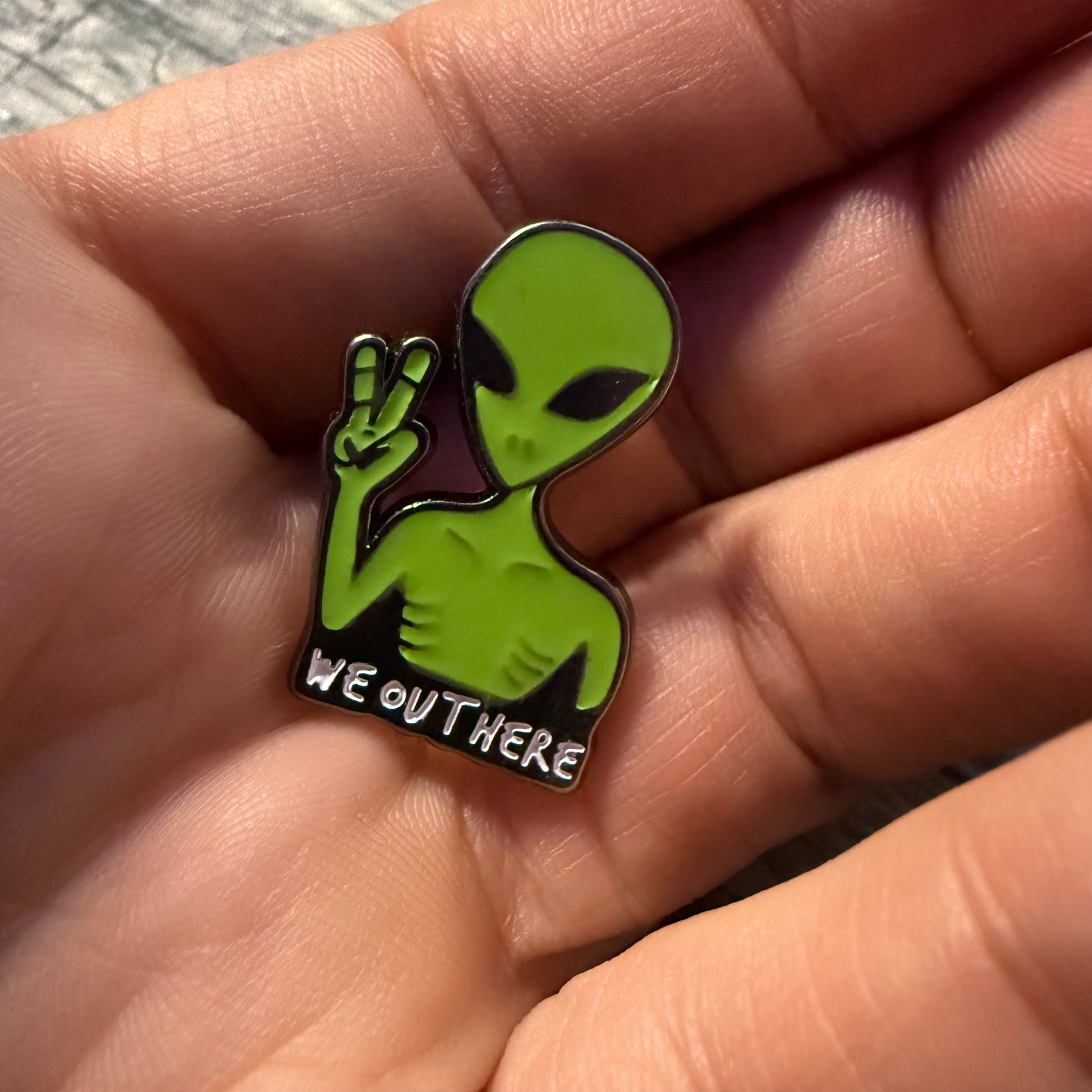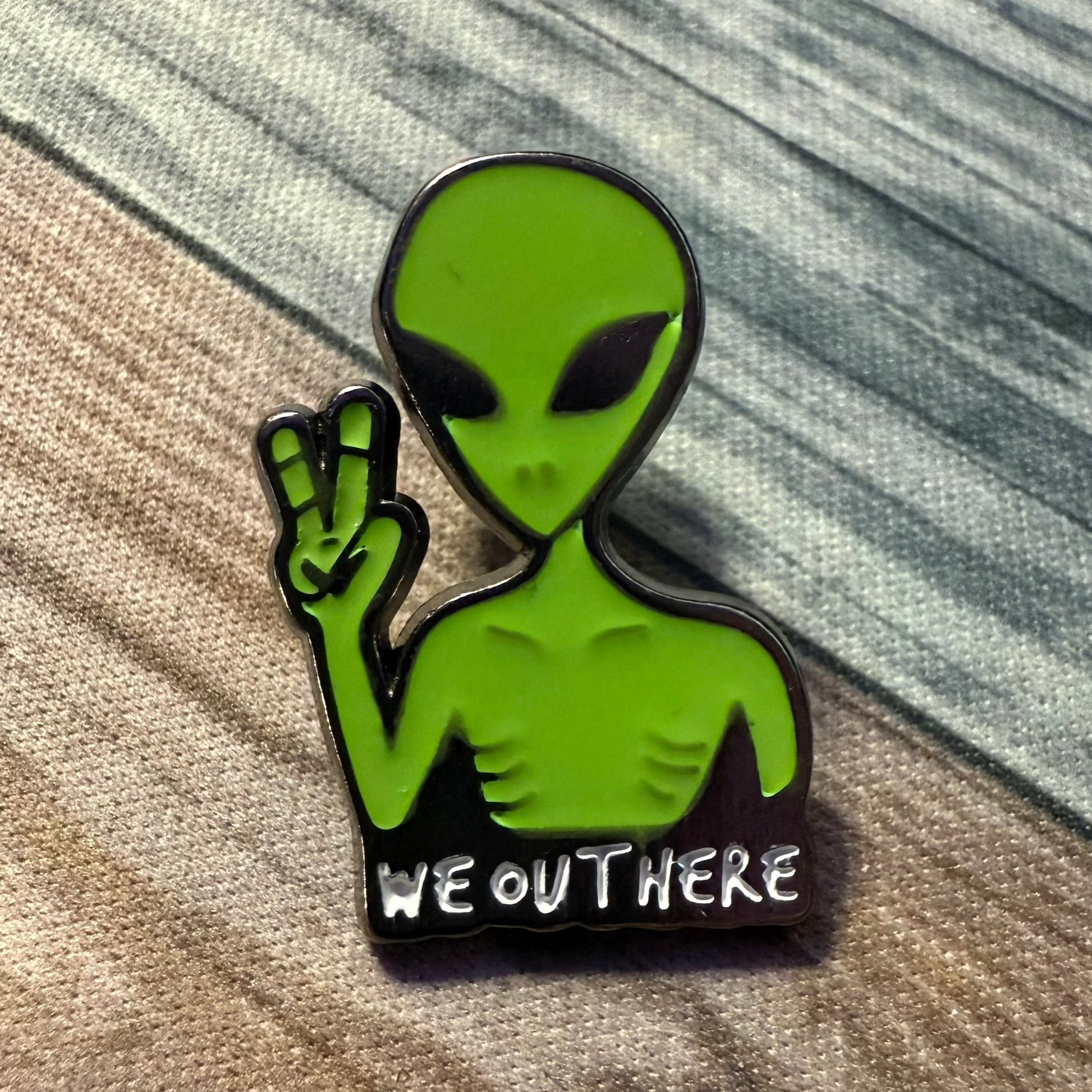 We Out Here Alien Pin | Pinback Button | Alien & UFO, Funny