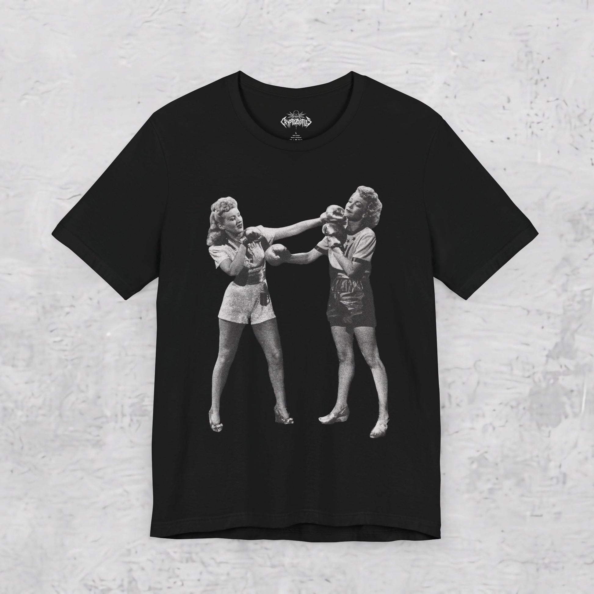 Women's Boxing T-Shirt Vintage Lady Fighter Tee Feminist Graphic Shirt Black Tee Retro Style Strong Woman Tee Gift For Feminist